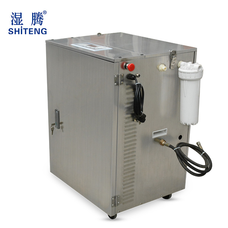 高壓微霧加濕器具有高科技含量的加濕系統,它利用柱塞泵將經過過濾器凈化處理過的水加壓至30-70kg/cm 2 左右,通過高壓厚壁管路將加壓的水輸送到“ 超微細”噴嘴霧化,并高速旋轉, 以1~15μm 的超微霧粒子噴射到整個空間,超微霧粒子在空氣中吸收熱量,從液態變氣態蒸發,使空間濕度增大,空氣的溫度降低。這就是微霧系統的加濕降溫過程。