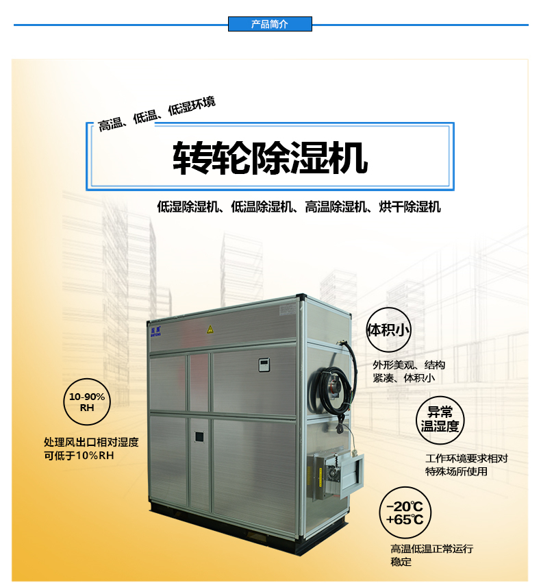 用戶環(huán)境溫度為35℃以上,相對濕度50%以上要求,則需要選配高溫型除濕機,相對濕度45%以下,則需要考慮轉(zhuǎn)輪除濕機;