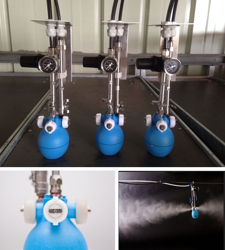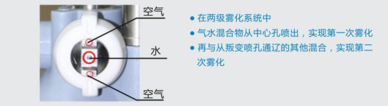 化。根據(jù)需要進行調(diào)節(jié)水和氣的壓縮比,獲得最佳的噴霧效果;噴霧顆粒大小:4.8μm-8.5μm