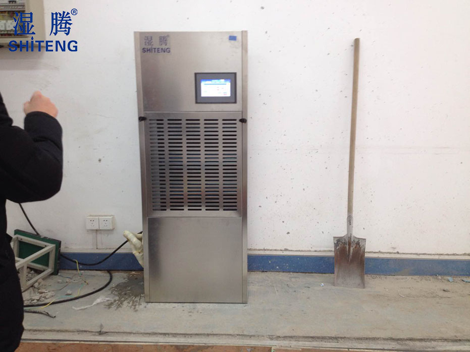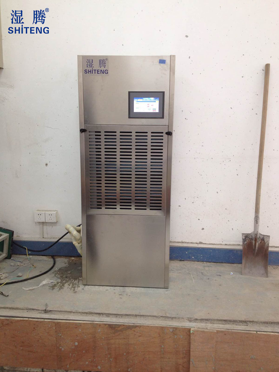 2015年11月來公司咨詢他們有個50平方3米高的的柴油機實驗室,室內溫度比較高,大概在50°左右,要做除濕機,濕度要求45%-50%。客戶描述的就是屬于我們高溫機型,給客戶按情況選擇了ST-8192B-GFB的高溫型非標除濕機,客戶看了參數表示還可以,但是還是比較擔心現場工況能不能達到。我司業務員積極和客戶溝通,讓客戶多方位拍了現場圖片,給客戶確認機器安裝位置和接線相關配置。剛開始客戶現場電源配置經我司技術看過是不符合規定的,我司技術和客戶現場通過電話指導解決后是滿足安裝要求的。相關事項確認完畢后我們開始簽訂合同,合同簽訂后客戶打款我們進行生產。